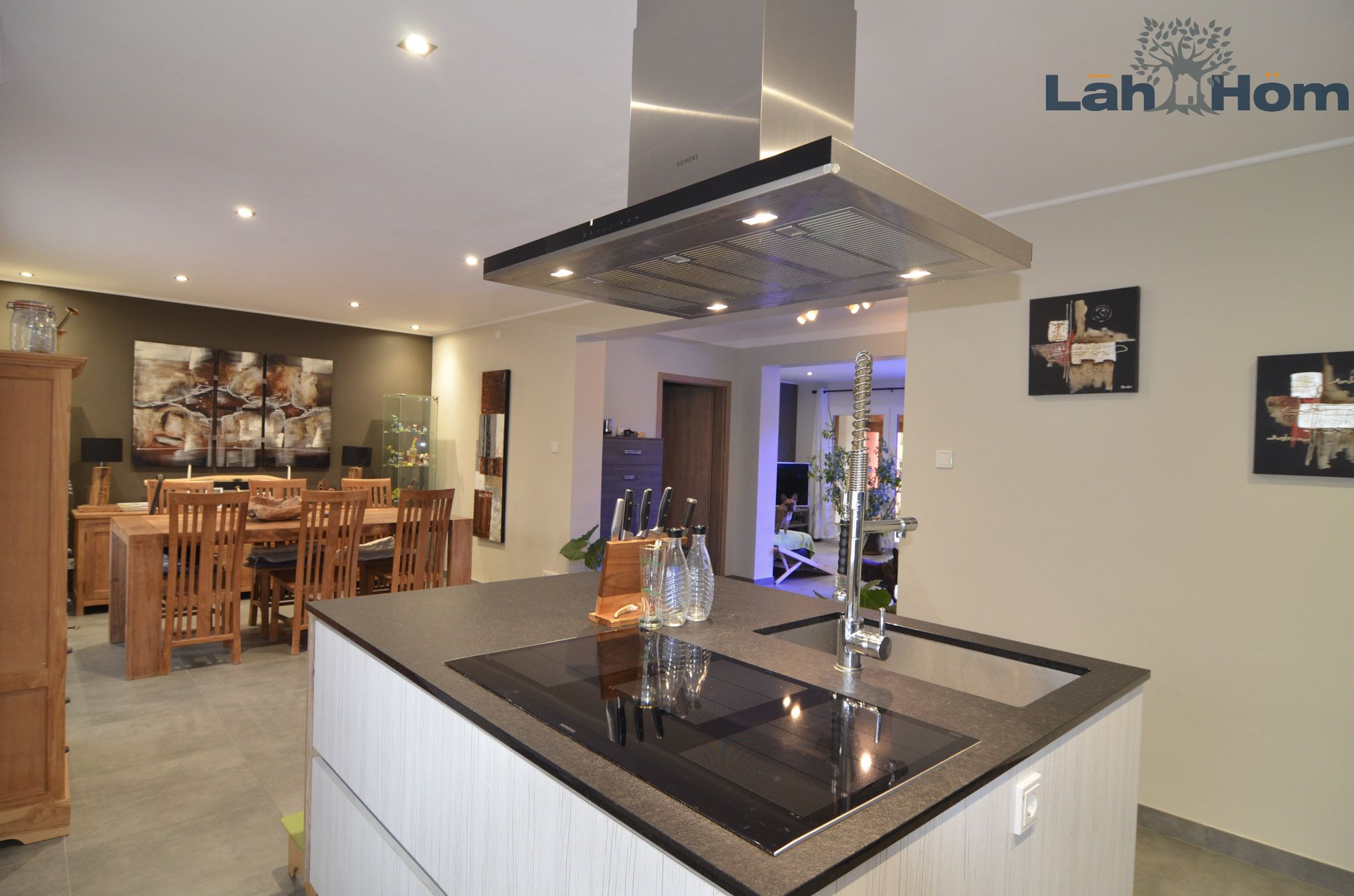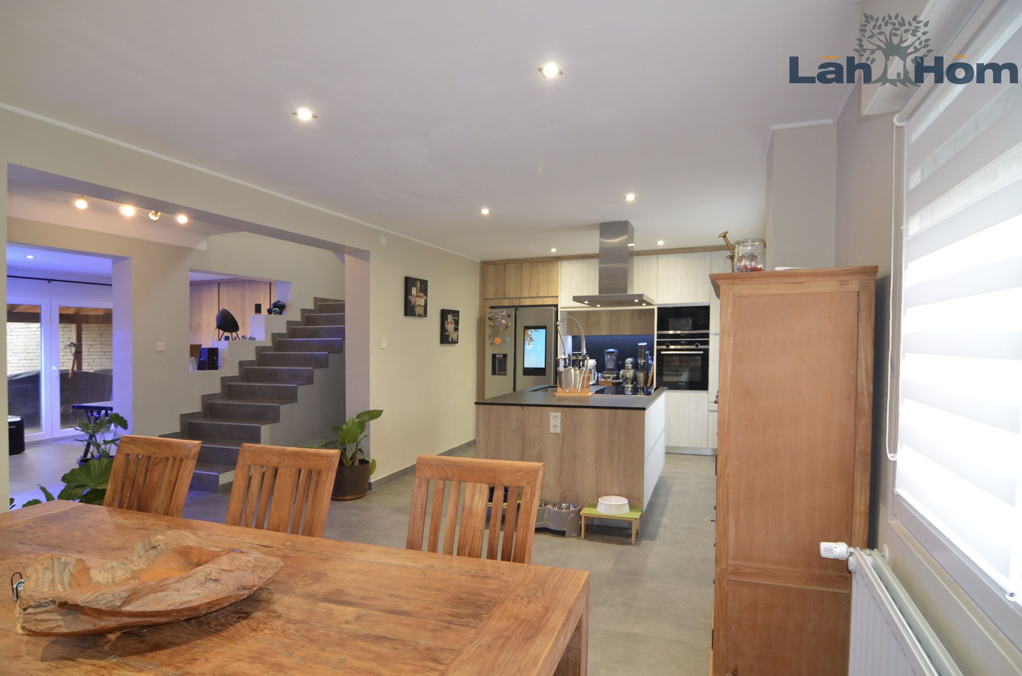 Édifiée sur un terrain de 7,5 ares, cette maison développe une surface habitable d’environ+/- 230 m², répartie en deux logements indépendants avec et terrasses privatives.